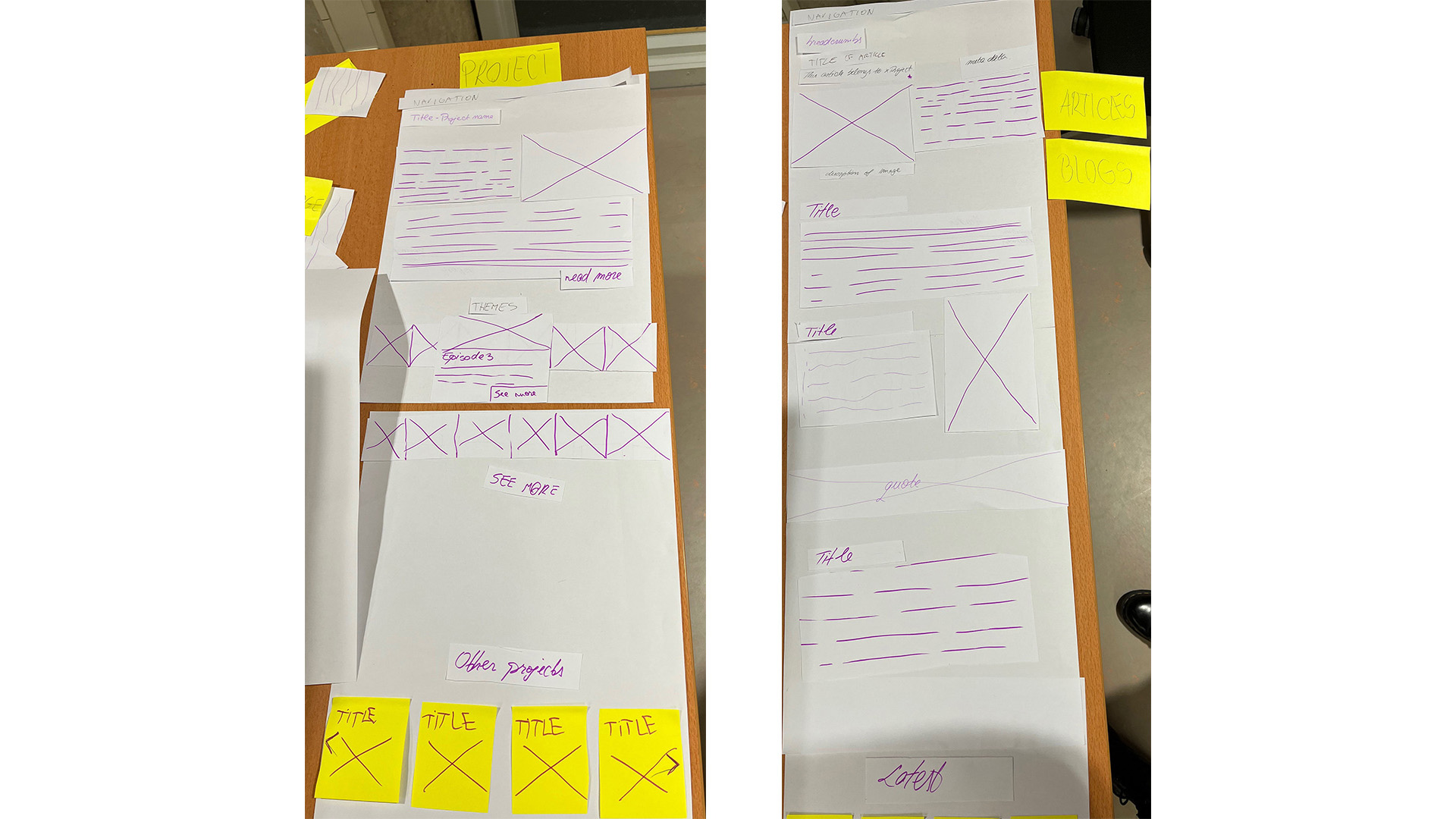 Once we had the structure of the page laid down, it was time to decide on the layout and interactions of the pages. That's why in the design team, we had a session for paper prototypes that we then translated to Lo-Fi prototypes.